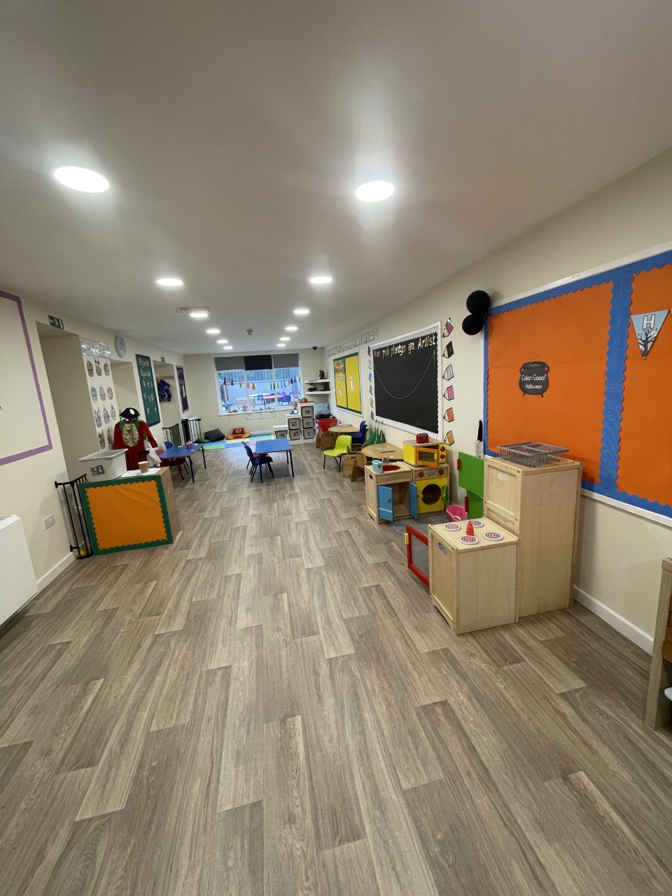 The nursery is on one floor: which includes a babies room, a toddler room, toilets and baby changing area, kitchen, office and a disabled toilet downstairs.