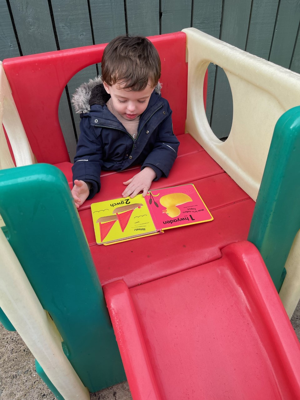 Rydym yn cynnig adnoddau ym mob ystafell, sydd yn canolbwyntio a'r datblygiad y plentyn, beth bynnag oedran yr ydyn.